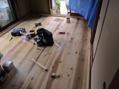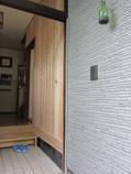 玄関には、ポイントで天竜杉板を1面貼っていきます。寝室には、天竜桧フローリング15㎜を貼っていきます。
