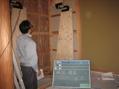 新幹線「のぞみ」をはじめとする鉄道車両用オイルダンパ、ビル用免震制震オイルダンパなど、すぐれた技術をもっている日立製作所の制震機材GHハイブリッドダンパーを確実に設置していきます。メーカーに取付の検査をしてもらい壁補修仕上げへと進んでいきます。